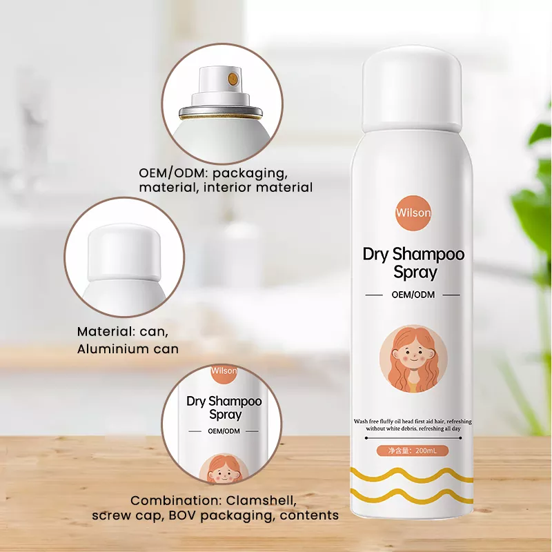 Прохладный сухой шампунь-спрей Wilson Instant без мытья, добавляя глицерин, триглицерид, витамин Е, витамин B5 и другие ингредиенты для ухода за волосами, чтобы волосы питались и увлажнялись, восполняли перхоть и сами волосы, нехватку ингредиентов, дополняя при этом слой масла для волос, восстанавливая повреждения волос, защищая голову от внешней среды и, наконец, достигая цели восстановления здоровых волос.