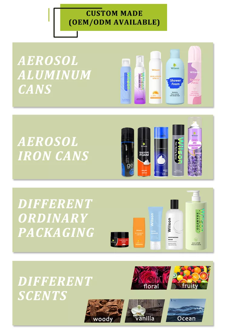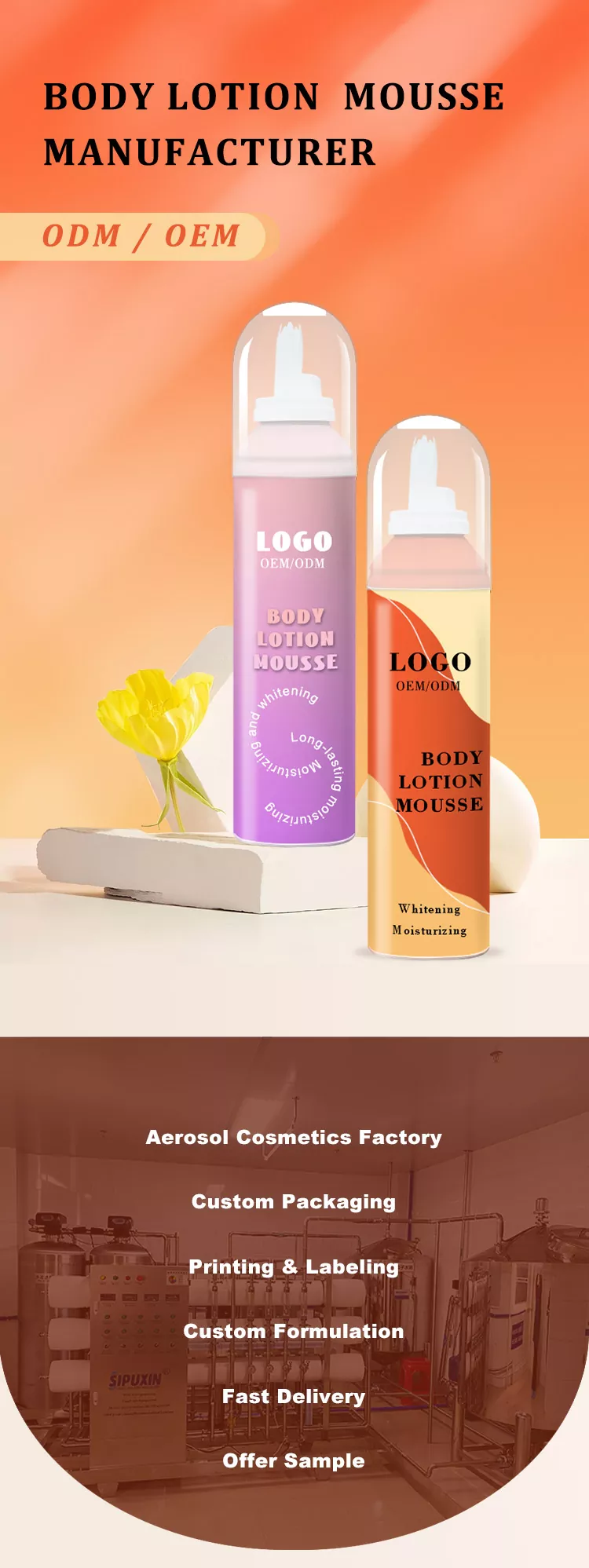Лосьон для тела Wilson Quick Absorb с легкой текстурой — это увлажняющий крем длительного действия, который легко впитывается в тело. Наш мусс выпускается в форме аэрозоля в алюминиевом баллончике, который при нажатии дает обильную пену. По сравнению с ощущением тяжести и липкости традиционных лосьонов, наш мусс для тела создает легкое ощущение, словно мягкое и плотное облако. Кроме того, у нас есть множество рецептур на выбор, например, вы можете добавить в формулу высокоэффективные увлажняющие экстракты, такие как множественная гиалуроновая кислота, натуральные растительные экстракты и т. д., которые могут сделать микроструктуру пены более благоприятной для состава ингредиентов непосредственно под кожей, так что она оказывает интенсивное увлажнение и запирание, длительное увлажняющее действие на кожу. Кожа увлажняется изнутри.